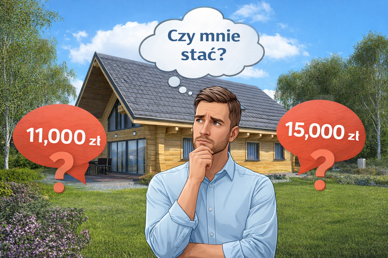 Stopień skomplikowania bryły: prosty parterowiec to inne koszty niż dom z użytkowym poddaszem, balkonami czy wieloma załamaniami dachu.